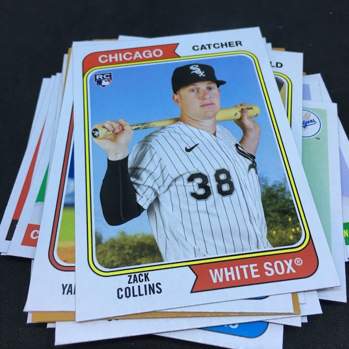 What's Buzz-worthy: The design of this box is reminiscent of some past Topps Heritage releases in its colors and design and that vibe translates into the stock here -- it's Heritage stock on everything. The base set is a strong mix of past and present -- check out that stars list -- with Hall of Famers beside today's stars. There are, oddly, some subsets that are numbered with the main set but feel like inserts and then some inserts that use past designs, too. This one is becoming more and more like a "Topps Herchives" release and that might not be a bad thing as Heritage marches into the 1970s. This one is going to be stronger with hobby boxes with guaranteed ink there -- though be ready for a lot of cheap names since this one is intentionally deep for collectors and fans more than hard-flip buyers. There are some strong possible finds on the checklist though -- hit that link above. The big draw here might be on the autograph side -- Cornfield autos for the now-cancelled Field of Dreams game -- but there is a lot of decent stuff to be found here. I give it a slightly higher grade than last year but ultimately this particular box didn't wow me as much. (I liked some of last year's designs better and the mix on both years can be hit and miss ... see my RCs for the miss part in this box.) Overall, this one fits in with the Archives sets of recent years but without the pop culture draws like Major League, The Sandlot and Bull Durham. (Maybe next year.) There are a lot of variations to look for (see the checklist and check your codes) mostly on the 1955s where the smaller action shot is either a different image or a black-and-white one. The 1974s include nods to the variations where Topps had the Padres moving to Washington and the 2002 is a variation where you'll need to check the photo on the back. Odds-wise, parallels here don't flow well at all -- one in 39 packs for the easiest -- meanwhile autographs are one in 10 blasters for the easiest of them, though maybe easier overall as there are a few auto sets. One cool thing I'll look for on the secondary market? The Giant box-toppers have Blue (one in 70 boxes) and autographs (one in 1,001 boxes) and there are some strong names there like Chipper Jones, Cal Ripken Jr., Juan Soto, Mike Trout, Keston Hiura, Nolan Ryan and Pete Alonso for starters. Your best bet to land the best stuff here is to rip in volume.