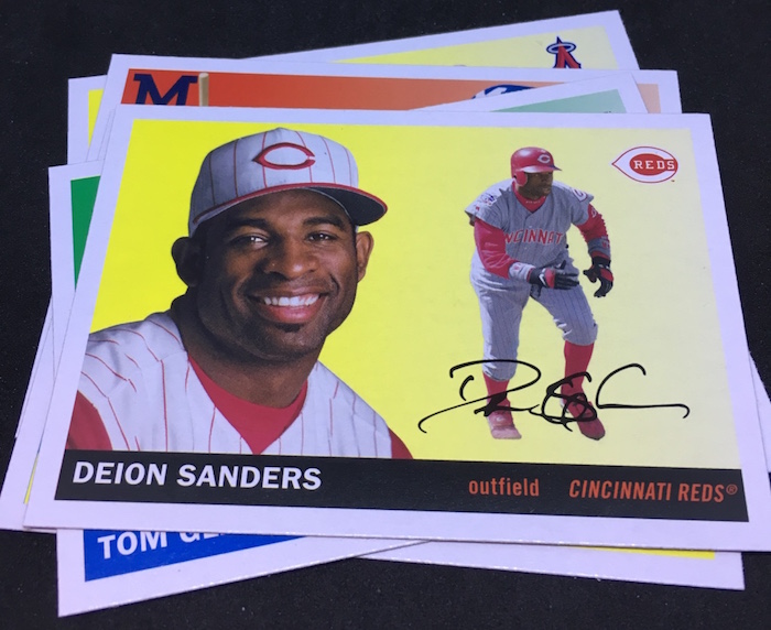 Notables on base cards – Mike Trout, Hank Aaron, Nolan Arenado, Larry Doby, Tom Glavine, Deion Sanders, Ronald Acuña Jr., Bryce Harper, Rod Carew, Joe Morgan, Dennis Eckersley, Freddie Freeman, Roger Clemens, Roberto Clemente, Sandy Koufax, Roberto Alomar, Kerry Wood, Jacob deGrom, Sammy Sosa, Duke Snider