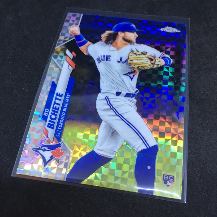 What's Buzz-worthy: I only did one of these -- left about nine behind for the kids -- but the first card I saw from my first pack did the job. It was a Bo Bichette X-Fractor, which is a card that at times has paid for the box over on eBay and maybe more. (He's a little volatile after his couple of big games.) Had I not done well with my previous blasters, I might have loaded up more here (but I also had Chronicles NBA to do) but the X-Fractors have not always been among my favorite parallel types. The rest of my box? Not quite as beefy as I had hoped but the second bonus pack included Acuña -- a favorite photo of mine this year for basic Topps -- and then there were some OK finds among the inserts and then at least a couple of key RCs. The rest? Not that flashy -- but the volume of what you get here gives you a good shot at landing key names more often. I like the Sepia parallels more so dollar for dollar I might do two of those instead, though that said the Pink Refractors in cello packs are pretty strong, too. (I haven't done those at this time.)