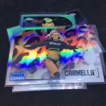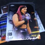 What's Buzz-worthy: This is the last of my boxes of this one and it's not all that flashy save for a pretty strong run of inserts/parallels ... but the one good thing about these boxes is that they are so consistent and deliver so many Refractors (just like hobby boxes one per pack) so you can count on that when ripping. That may hurt the value a bit for those cards now while eBay has plenty to be found but the big names are still big names -- and it's not a given you'll find any particular key name in a blaster given the set size. Down the line, those Refractors of key names will be stronger -- and Refractor RCs could be bigger deals in slabs as more and more WWE collectors seem to be going graded. The Refractors here were good but this still feels closer to an average box but with some flair (no, not Charlotte) to keep it from being a C box. Hobby boxes are the no-brainer with this release with two autos every time and once they are gone these should be a go-to if you're not solely ripping for ink. (Stuff is in here but at long odds.) If you want ink, I'd still pay up for hobby as there's good potential here with color -- a rare version of a key name is cash just like elsewhere. I didn't land any of the bigger rookies in this one but they are in there, too, to add some long-term appeal. This year's Chrome release already has been teased, so it's apparent that this one was a hit ... not just with me. Poke around here on The Buzz to see more rips of this one -- they had been a lot easier to find compared to most stuff these days out in the retail wild ... but now even these are long gone.