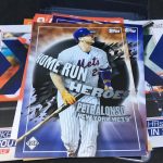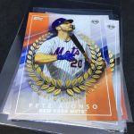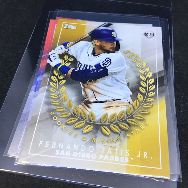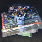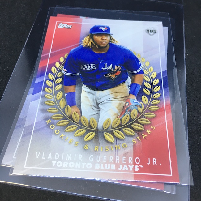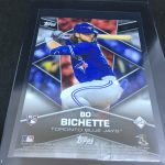 What's Buzz-worthy: Want a dirt-cheap box with a boatload of packs and a ton of star power? This is that -- and I will be grabbing another after this first taste (I totally skipped it last year) so I can slab some Bichette rookies here (both stickers and cards, hence the semi-rigids in the photos). Why? They've got to be off the radars of many out there based on the box prices (sub-$30) and the print runs are perhaps not as astronomical as people might think ("they're stickers") with the twist added that the backs here are cards as well. (That's something done in recent years, giving us more RCs for key names.) The design and subsets in this one are pretty tight -- literally and literally -- with tight photos on most designs and some smart inclusions like legendary past players, highlights, awards, mascots, stadium sights and more. Most of those things get sidelined to more basic releases but they add a good feel to the scope of a release if you're not just looking at re-sale dollar signs. This one was a lot more interesting than I had expected (I bought it to have some filler on slow days) and it turned out to be nicer than I thought. There was no 2021 sticker set due to printer/packager issues that companies are still dealing with post-COVID -- so there's a chance that these might get eaten up (pack-wise) by the time we see the next one. Is there big break-up value here? Perhaps not, but with the prices for boxes and packs so cheap those key names will pay for a few packs easily and there are a lot of good names here. A decade from now, I could see these boxes and singles being tougher to find than flagship.