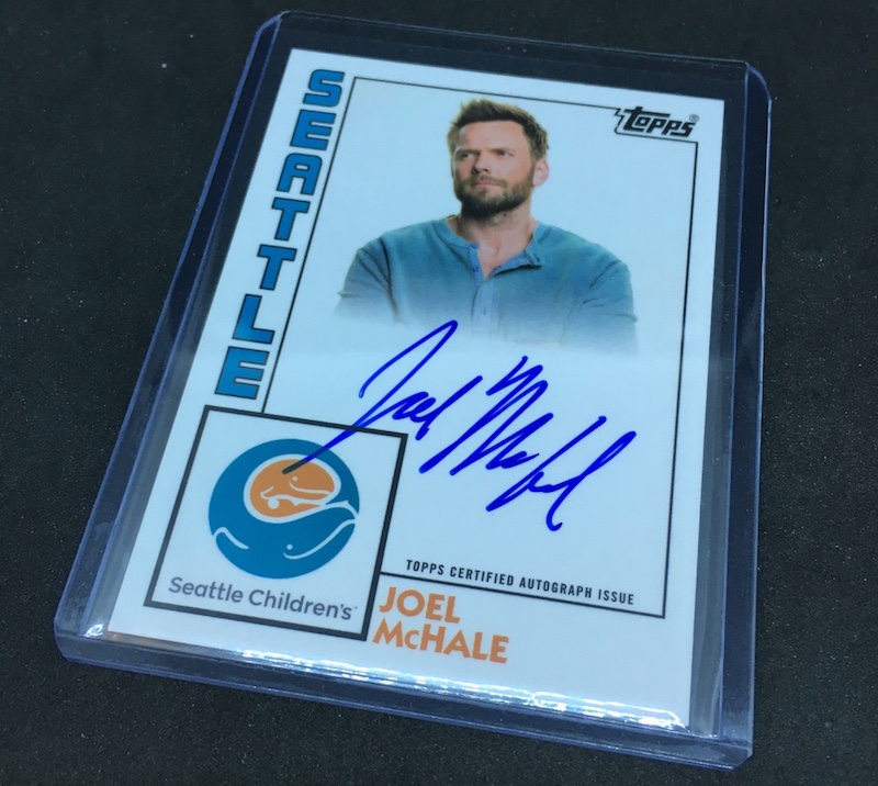 What’s Buzz-worthy: If you live in Seattle and know what the Bartell Drugs chain is, then you might have seen these there when they arrived earlier this month (Nov. 12) -- it's a 25-card set with an autograph sold there for $25 (limit four per person in stores if one finds them). Proceeds from the sales go to Seattle Children’s Hospital and it's a mix of "Seattle athletes, performers and ambassadors" and then a trio of kids who have been success stories. Everybody on the checklist, from Seattle Mariners legend Ken Griffey Jr. to Macklemore, Russell Wilson and Ciara have autographs to be found in these sets, which arrive as a sealed pack inside the sealed boxes here. The cards use the 1984 Topps baseball design and are printed on high-gloss thick stock like Topps Now releases. The big-name autos (Griffey, Wilson, Ciara) have sold for as much as $500 on eBay (flip to completeds) as they are undoubtedly rarer than others, while other names on the checklist can also easily pay for a few sets. Everything is signed on-card here so this one has likely been in the works for some time and it's got a few first-time card appearances and autos to go with a legendary lineup. (I picked this one up for around $40 and should have done more but I didn't check the auto sales.) My set was a solid one with ink for actor/comedian Joel McHale who is among the first-timers here. You can see the entire set in the gallery below.
