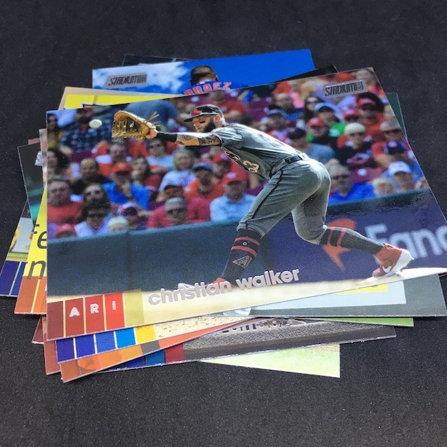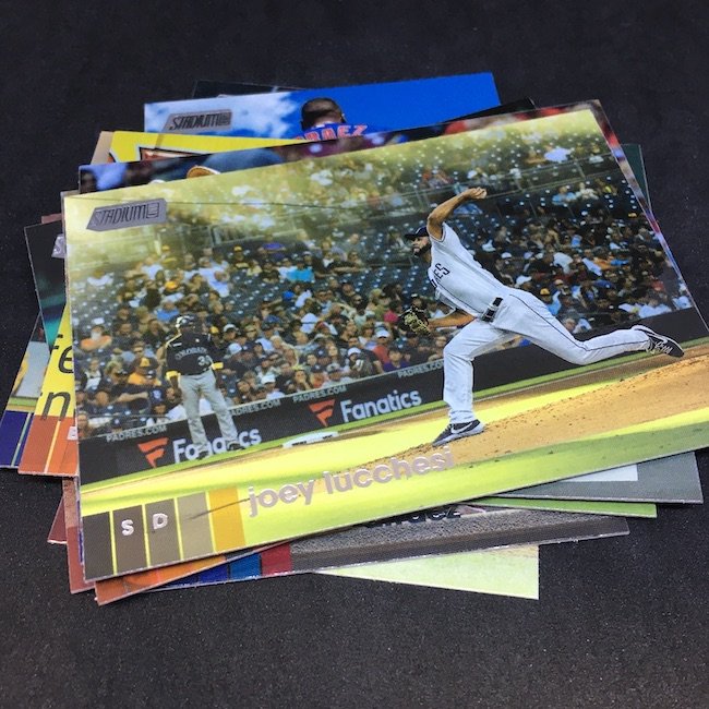 What's Buzz-worthy: This one remains on the popular side for 2020 releases but rather than dig into a full box or a premium-priced blaster I went the cheap-o route with a trio of loose blaster packs just to revisit this one with a small taste. Odds-wise, it delivered OK -- it had an insert per pack here (one in four or one in eight packs for the odds) but the biggest find might have been the basic Ohtani card. ... Stadium Club is a fun release for a number of reasons but it has a pretty big base set that can mean of the star power is missing if you're ripping into a small box or pack lot like this. This brand is one that carries a slightly premium feel with a pair of autos in every hobby box -- that's your best buy these days -- but if you want a cheap rip with good basics and some chase then those blasters work, too. My small pack lot experiment? I might do this on older stuff ... this one wasn't a wowser but I like the overall release.