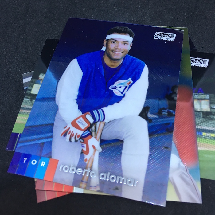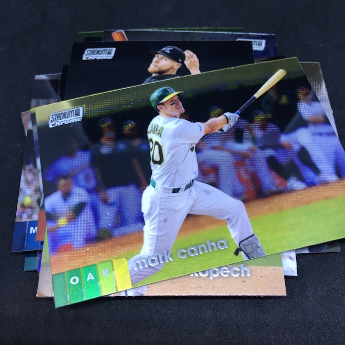 What's Buzz-worthy: There's a lot to like with this one and some little things here make this a better rip than normal Chromed stuff in a blaster. One of them? Six cards in a pack ... even though you get fewer packs that's better than the feel of only four. You get an insert or parallel in every pack based on this approach and then a blaster has a four-card bonus pack of X-Fractors. What's the drawback to all of it that got me with this box? It's a huge 400-card set so finding those key rookies and stars isn't easy ... and this box showed it. There are nearly 100 RCs to be had here and I landed four that aren't that big of a deal on cardboard. My base cards weren't much better, either, with Harper and a couple Hall of Famers not that flashy. Even the photographs in this box weren't as unusual as you would expect a Stadium Club set to have, either. My lone insert highlight if you ask me -- and it's pretty rough on that end this time, too -- was the Gold Refractor, which is one in 27 packs (seven boxes) but not a great name to find. It happens. That's actually a tougher pull than an autograph in this format -- ink is one in 19 -- but overall this box had a decent amount of variety but it didn't include enough star power. Hobby boxes include an autograph and more every time so if you're sold go that direction for sure -- at least if ink is a mandatory thing for you. If you want to build a set, a combination of a hobby box and some blasters will get it done. This format does have long-odds potential with Superfractors in every set to be found here ... so with some luck you could have a blast. All in all, I like the release but this box wasn't a good impression. We'll see how others treat me ... if I can find them.