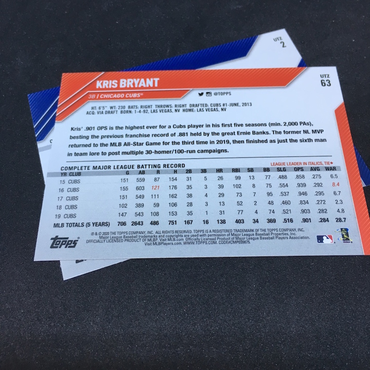 Topps baseball cards (2) – Albert Pujols, Kris Bryant