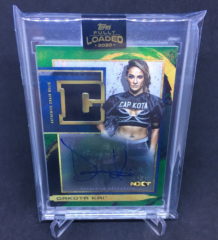 What's Buzz-worthy: The first half of my case I busted -- look for the second half in next month's Buzz 8 in 8 breaks marathon -- led off with ink of perhaps one of the most-dynamic characters of the last year, "The Fiend" Bray Wyatt and the second card I saw was of the current WWE champ, Drew McIntyre. Both are standard cards and not all that rare -- basic mat autos here are either /199 or /99 from what I have seen -- but it started with a good impression. This part of the case is arguably not flashiest but there are some odds here in the parallels that get it to an A- grade in my book. That Styles Gear Relic here is one in 176 boxes -- my rarest card in the case, but not the most impressive card. (That's a piece of match-used personal ring gear, by the way ... not the norm. These have higher volumes but unique swatches make them worth a look, especially the Shinsuke Nakamura.) The Green Chairs are one in 40 boxes while Green Tables are one in 21, and Green Mats are one in 24 -- that's helpful because the names aren't the priciest finds here. All cases I have watched have coughed up eight or nine parallels out of 20 boxes so some of these odds are how the various sets' sizes work out in the mix. The checklist is a relatively limited one -- around 90 different cards --- so even with parallels you will see a good number of names in a 20-box case. I did have a couple of duplicate signers across the entire case but one was a young stars that might be good. Early singles prices here are strong and might not hold -- that Kai, for example, has sold for more than $100 on eBay ... and a lot of cards out there are priced above that plateau. (That may not work unless they are rarer cards or top names.) This first release's checklist is a little more limited/simplified than people might have expected -- I think it might have had some COVID-caused limitations as this was delayed. (Plus some card volumes here are a bit high, making me think that might be in play.) But it's a strong start and I think this is a model that should be continued for WWE. Is this a strong box-flipper or rip-and-flip product? I don't think so -- not without some safety in volume if ripping. I think it is perhaps a good group-break/draft type of release if the box price is reasonable. (A lot of WWE autos just aren't pricey all of the time so there can be risk.) While that may sound critical, I'm coming at this one as a collector -- and there's a lot to collect here. It's a release I'll be grabbing stuff from for a long time. My second half of the case? It delivered very well ... and I'll offer some more thoughts on this one during next month's Buzz 8 in 8 day.