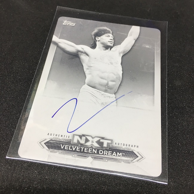 What's Buzz-worthy: I just can't quit this one ... and it keeps delivering, though this printing plate went from an "oh yeah" to an "oh hell" in an absolute instant as a plate was great but VD has the worst autographs in WWE history and is gone from the company after some controversial allegations. Beyond that, though, this box was still solid with two numbered parallels, at least four RCs (not really RCs since they are inserts but they are better than the base cards) of good names to find and then more cardboard beyond that. I've busted a case of this one and then probably a couple more cases loose and I'll stick with it as these boxes deliver two autos every time and go for a lot less than other stuff out there. The only drawback here is the stock -- it can be damage prone often on the ink -- and more and more autographs are arriving for the key names here. For more thoughts and more images from these boxes, check out my other breaks. While these are findable, I'll be ripping them.