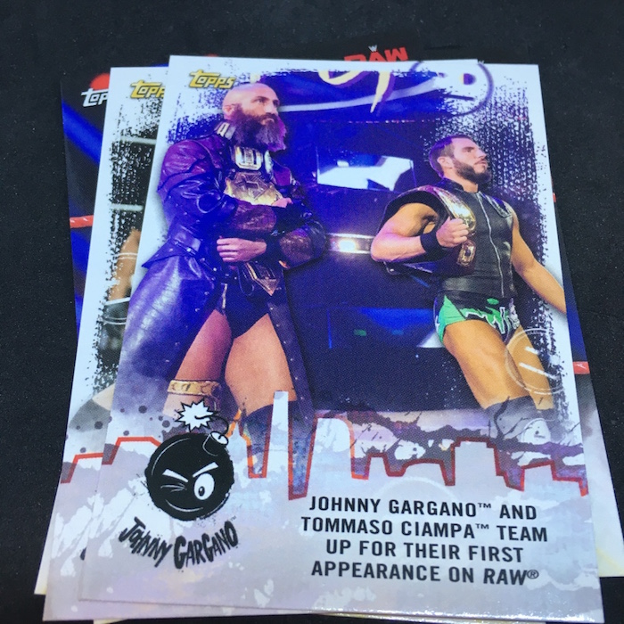 What's Buzz-worthy: This one is a favorite of mine -- brand-wise -- to get to but I tend to do it after-the-fact when names rise up through the ranks ... but this one is a little different. I like its format, which was a Plan B after delays caused by COVID. I once again landed the two key rookies in my mind on Roster cards and this time I landed a pair of parallel cards that actually don't have long odds for their low numbering (check those backs ... the serial-numbering is not stamped) and, more importantly, a parallel auto of a rookie who has some potential and is younger than a lot of others. ... The changes made here cut down on the base cards and that's a good thing with this release. It was supposed to be a 24-pack box but instead is a two-pack, hit-per box. This move downplays the highlights-driven base set and lets one focus on the better cards here -- the Roster set -- as well as the inserts and hits. You get an autograph in every pack this way and there are some young stars here with big demand vs. others -- particularly Shotzi Blackheart on her first WWE auto and Rhea Ripley -- but there are others on the checklist that aren't bad chases at the per-pack price this one is currently at. This one isn't a flashy rip -- others from last year certainly trump that with Chrome and Finest -- but this one is the home of early card appearances and that's one reason why I rip. If Topps were to flip around the format and drop the highlights approach, this would be the kind of release I'd buy by the case yearly ... but as it is now, I'll dabble and pick off names I like ... in other words, I'll collect it.