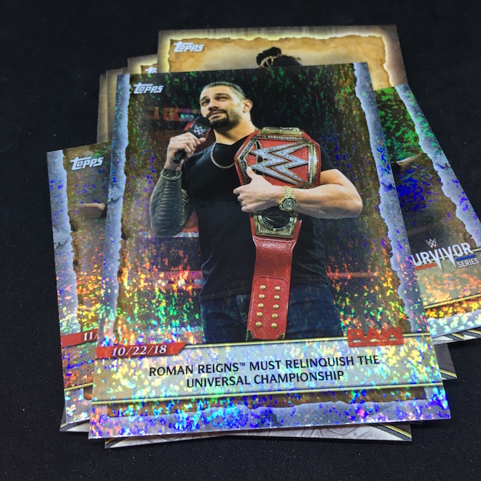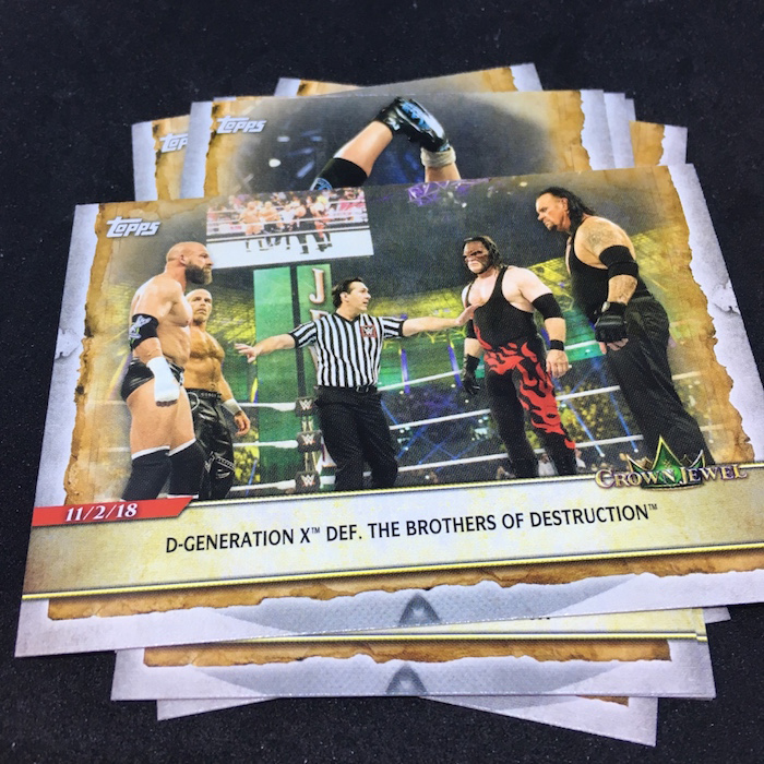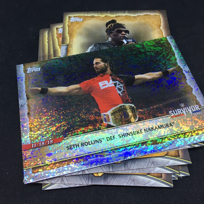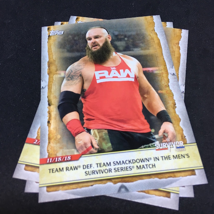 Notables on base cards – Braun Strowman, Seth Rollins, Finn Balor, Randy Orton, Roman Reigns, Brock Lesnar, The Miz, A.J. Styles, Kofi Kingston, D-Generation X, Daniel Bryan