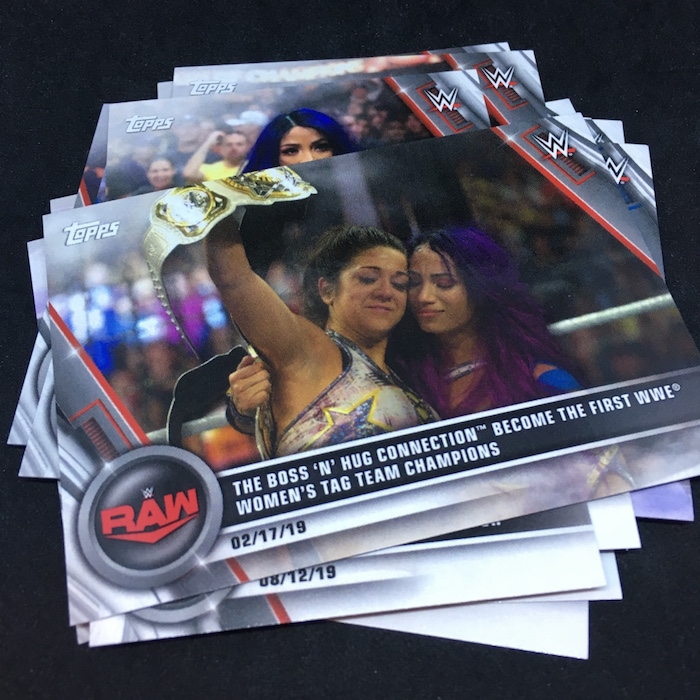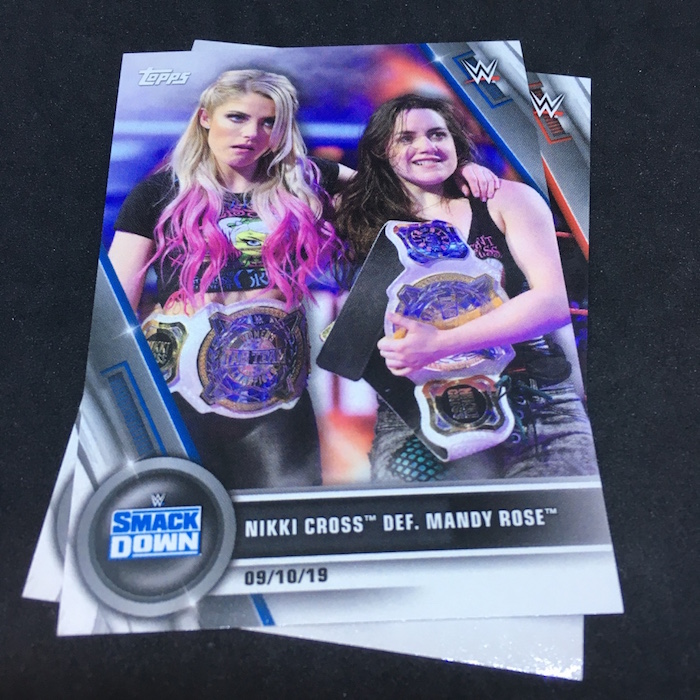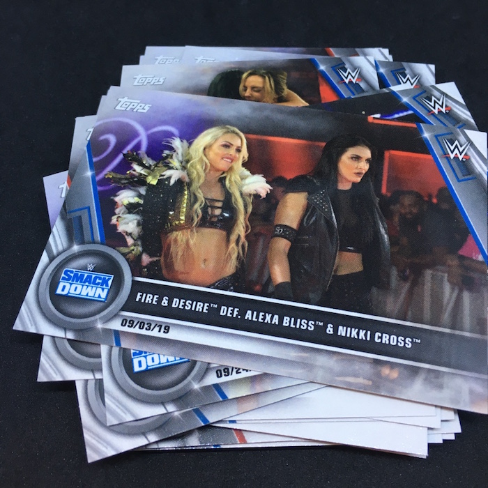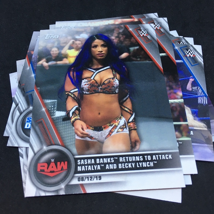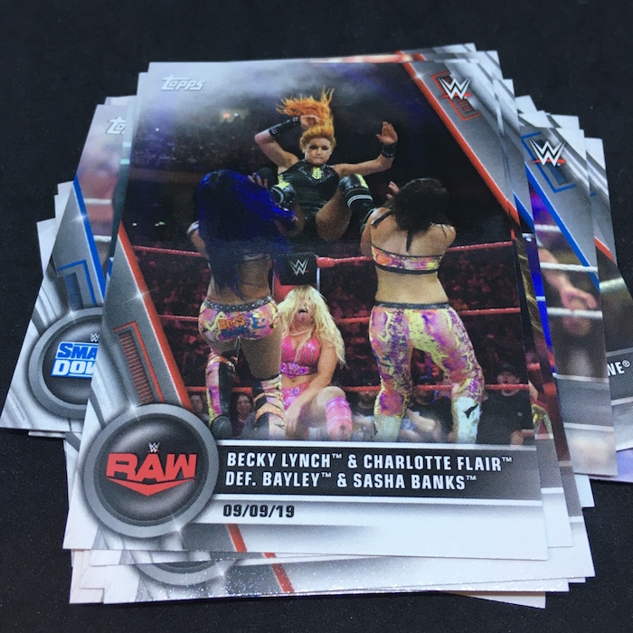 Base cards: Nikki Cross, Alexa Bliss, Sasha Banks, Bayley, Natalya, Becky Lynch, Charlotte Flair, Peyton Royce, Billie Kay, Paige, Asuka, Kairi Sane, Mandy Rose, Sonya Deville, Io Shirai, Mia Yim, Shayna Baszler, Ember Moon, Rhea Ripley, Ronda Rousey