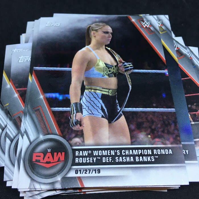 What's Buzz-worthy: Here's the latest one of these from my recent case pick-up -- a box that included two of the notable rookies in the Roster set, a new Hall of Famer on a rarer parallel mat Relic (one in 14 boxes) and perhaps the biggest star on Night 1 of this year's WrestleMania appearing on the auto. Not a bad box at all but also one that can be topped -- yet one of the better ones from my case. For more in-depth thoughts here, check out my previous breaks.