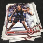 What's Buzz-worthy: This was a funky break with a couple of packs coming up short on the basic number of cards that should have been in the pack ... and then it had six in one pack and five in another ... coming out at one more than it was supposed to and short of the perhaps-typical number that this one's football counterpart included. (Typically 32 cards as the Chromes drop in as extras vs. the stated 28.) Beyond that oddness, this one's Green Lava card at one in 159 packs (23 boxes) was a decent find and then a couple of Chet Holmgren appearances helped it a tad in the here and now. The player crop? It's some recently drafted players and then players who are NIL guys meaning they have time before their number is called and this one's potential for yielding good cards is perhaps longer here than it could be for a typical draft picks set that loses some of its luster once the first NBA sets drop with pro-uni RCs. The drawback here is that it doesn't carry team names or logos -- Topps will get those back in the future -- but one thing that helps this one is that there's Chrome. I won't be dabbling on the hobby side for this one but I think it's worth the look. Why not? I'm not much of an NBA collector -- might not even be much of a dabbler these days unless something if affordable -- so I'm not scouting the player crop all that hard. I think what this one presents -- especially at a sub-$20 blaster makes it a decent low-risk rip with some up-side. You can find Superfractors in this format (long odds) as well as autos that start at one in 76 here but are assured in hobby boxes. Heck, even Superfractor autos can be found in blasters.