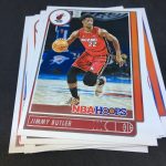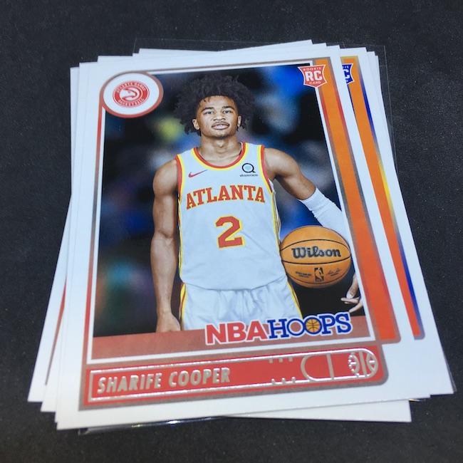 What's Buzz-worthy: My first look at Hoops was a little delayed -- I let the flippers get their fill for a bit and waited for a later arrival -- but it still delivered pretty well for me with a hit (albeit not a big one) that doesn't appear to be guaranteed (could be but this is the only one I have opened or seen opened) and then with a couple of top rookies, a couple of inserts or recent-year notables and even two parallels of players with school ties for me. All in all, I liked the box, though I couldn't go A-level on the grade or A+ on the box with rough stock, tweaked corners from packaging and other small issues here way too often for my tastes. (Is it the norm? Maybe some of it ... but first impressions have stuck with me.) The photo frame is a little less overwhelming than recent Hoops releases -- that's good -- while the insert lineup here emulated last year's almost identically. I think this one is solid but perhaps just in need of something more in this format ... something to pop out of the box more or feel more advanced. The SLAM cards are a nice touch and closer to this but still feel a little bit like the other inserts. All in all, if the SRPs here were $19.99 with the hit announced as guaranteed it's a bit of an easy go-to but at $27.48 (Walmart's price with a little more atop SRP ... then add tax) I think I'm more inclined to dabble or just grab whatever gets my attention as singles if I absolutely need something. There are Red parallels (/75) here and some ink and other memorabilia, too, so with some luck and big names in those spots, you can have some big wins here.