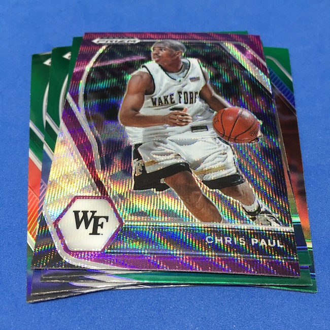 What’s Buzz-worthy: I passed on these back at release time -- can't collect it all and draft picks basketball isn't that high on my radar -- but at a discounted price in a bargain box lot, well, here we are. The boxes have more packs this time vs. others for this brand but fewer cards. Atop that, the lineup of what was found here was, at best, average in what's found ... and I'm probably being nice there. Just base cards and parallels this time in this format ... flashy but, man, that's dull when it comes to variety -- and that's probably one reason why I hadn't opened this until now beyond the price point for basic Optichrome blasters in recent years. The mix of past and present names here is good -- more older names in college colors really helps as they're established but not as-often seen in those unis. The color and flash is fine but even that's limited in its scope here ... five of one color and just two of two others. It all just feels way too lean for my taste as a casual dabbler -- even at a bargain-bin price. Hit the bigger boxes for more guaranteed finds and variety (I hope) in those boxes. I think those will deliver better than this one but a bulk buy here probably still has some good potential.