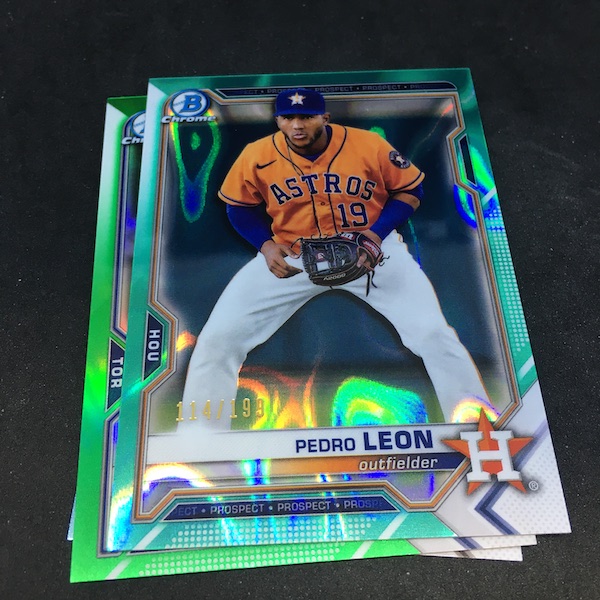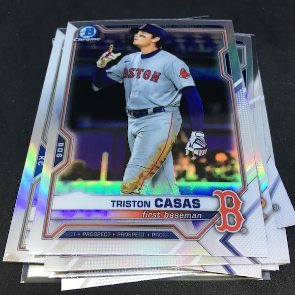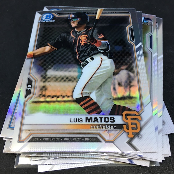 What's Buzz-worthy: These boxes are loaded with Chrome, base cards and prospects, of course, but most people break 'em for the ink and some color. All of those things were in play here and it was an A+ box to me. Why? The Gold auto is one in 276 packs. The Atomic Invicta is one in 345 and the Class of 2021 auto is rare, too, but I didn't see those among the wrapper odds. The other colors here are also rarer than one box but the rarest stuff here was easily enough to get this to A+ status regardless of who appears on them. My inserts included some good notables from recent years, though my Refractors were light on the top names of this year ... and really my Chromes were even leaner beyond a couple names. ... Just like I noted in past years, based on the pack breakdown here the big names don't flow as well on the Chrome side because, well, there's a lot less to find there, but there's a ton to look into here overall -- and remember this is a Hobby-only release so these boxes and the Super Jumbos (five autos per box) are the only options again this year. Keep in mind that there's also no retail component, so that can also affect how people can get their hands on this one -- or inspire more secondary market pick-ups whether that's singles or lots. There are a lot of ways to prospect and they all often hinge on this release every year.