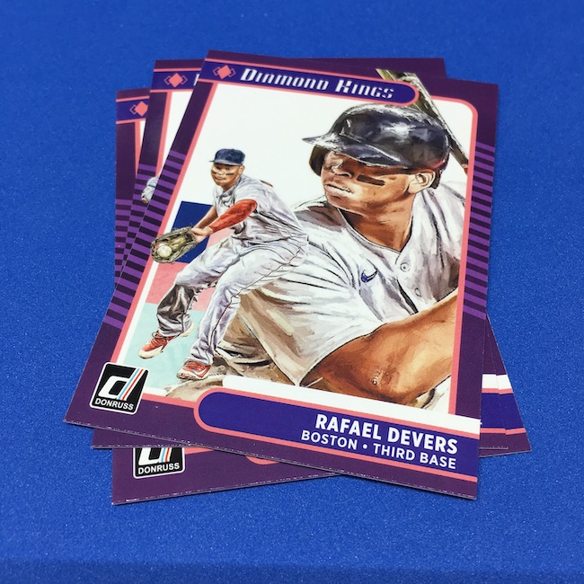 What's Buzz-worthy: It's been a long time since I ripped one of these and it's still a pack that is loaded with variety and star power from the past and present as well as with the inserts. In this one, the base cards were pretty light save for Diamond Kings and maybe a couple of names in the Rated Rookies. The inserts delivered well, though, on big names past and present and even some names I like. ... I think this might be the strongest overall package of Donruss baseball to date because it breaks away some from the old in favor of some new. The Diamond Kings design, for example, is a little funky but it's not locked into a 1980s framework of the past so it gets points from me for trying something new. The main design is crisp and clean -- better in-person vs. mocks -- and it is so strong I think it helps make this one perhaps the best release in the return of the brand. There doesn't appear to be a tell to know which cards are SPs unlike past years, but the nicknames for players or their cities are the most-common way to find nearly all of them and they arrive together inside the pack among the inserts portion. Some here are very subtle (Molitor has a different crop, Ruth has a different text break on the back) but the others are pretty obvious. All in all, these boxes are not bad if you land them on the cheap. Hit the link up top for hobby boxes that will guarantee you this and more as well as hits.