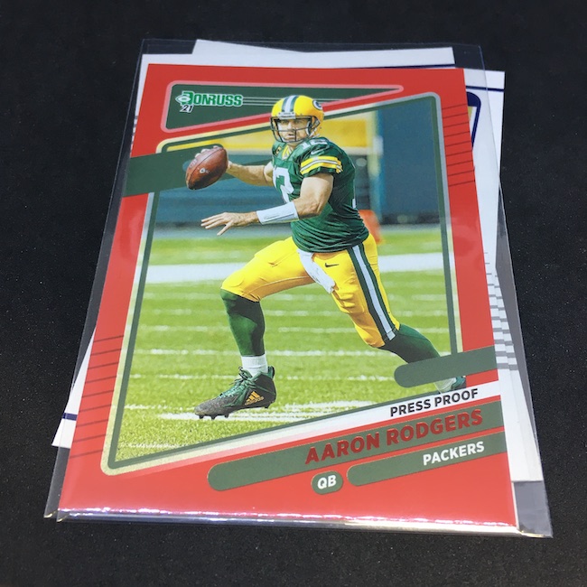 The box: 2021 Donruss NFL cards (hanger)