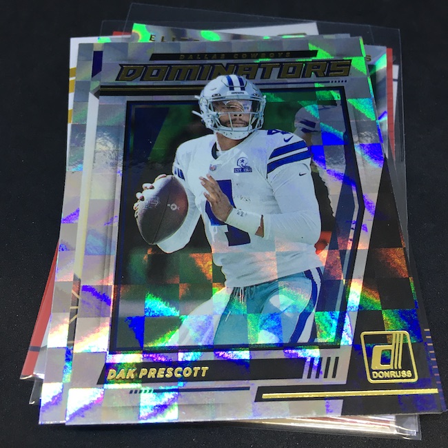 Notables on base cards – Dak Prescott, Dalvin Cook, Derek Carr, Daniel Jones, Aaron Donald, Chase Young, Mark Brunell ... a pretty rough pack on this front