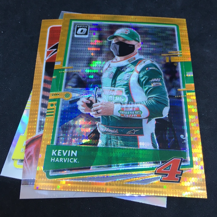 What's Buzz-worthy: This was an odd box but let's first talk about this autograph. You might not know his name but dude is one of the luckiest drivers in NASCAR history. Why? He walked away from this crash during practice at Bristol several years ago -- click the link or see it below. He hits the end of a wall that literally slices his car in half. Then what's left still spinning from that impact gets hit by a another car at full speed ... and he simply steps out of the cage from the middle of it all unharmed. Harmon doesn't have a lot of autos, but this is one I'd want simply because of this insane moment in NASCAR history. Now, on to the box ... the run of base cards here seemed oddly lean on notables (see gallery for all) but the inserts made up for thigs for it to be a pretty strong box for a blaster. Two numbered inserts (one on the rarer side) plenty of Optic, plenty of paper parallels and some appearances by younger names like Hailie Deegan helped this one out ... even if I don't know a bunch of those base names. (It may say more about me as I'm an occasional NASCAR watcher but, still, I know names.) The mix here is a fun one -- some might argue it's too much but that's how basic sets need to be in any sport these days if you ask me. I was on the fence about trying some of this release in hobby where there are a number of relatively easily pulled fifth anniversary on-card buyback autos and a lot more to find but I will at some point soon after this break.