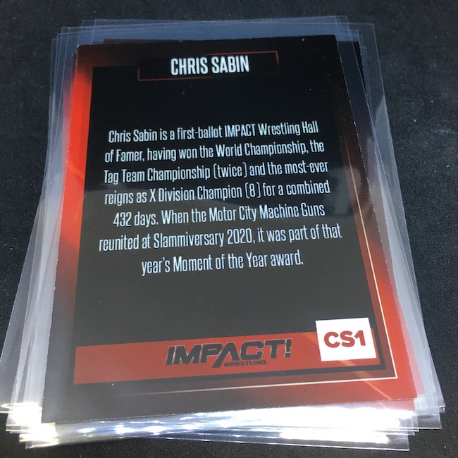 What's Buzz-worthy: This is the fourth wave of promotion-made trading cards made this year and it's the series that fills in all the skip-numbered spots that were missing so far. Does this mean Series 5 is coming next year or will it be 2022 Series 1? (Let's hope it's not a finale as there are still plenty of stars who have not had cardboard on their roster.) ... This is the newest batch of cards in a series that is the first officially licensed Impact! wrestling card set since 2013. These packs ($29.99) appear to be the same each time based on the lineup on the back of the pack save for an autographed card limited to 100 copies. There are also once again three autos to find here -- Chris Sabin, Matt Cardona and Tasha Steelz. I landed the high-flying Impact! veteran who was around for the TNA cardboard back in the day ... even the first set in 2008. This series fills in the gaps with some key names in the company's history but, interestingly, doesn't include ink for the likes of Gail Kim or Scott D'Amore. ... With only 300 sets made (100 per auto creating that situation) and the ability to order three to get all of the autos this one is easy to collect if you get in on it straight from the company. Secondary market prices here have been pretty strong on sets and singles, in past series, though you don't know which auto you'll get until you open the box.