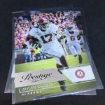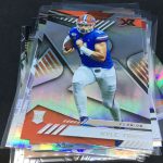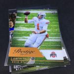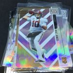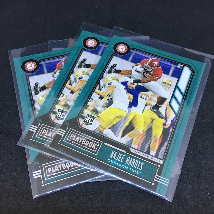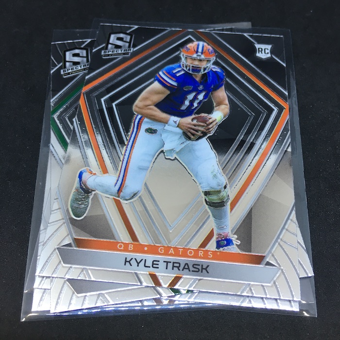What's Buzz-worthy: My box delivered a boatload of star power -- and nearly 30 cards for my school alone -- but I'll admit that some production issues here definitely stung keeping things from being an A+ across the board from a collector standpoint alone. All but one of my Optic cards had pretty severe chicken pox surfaces up and down all borders and a Silver Spectra of a solid player had that as well as a dramatically large crease in the top surface but not the cardboard backer ... they were not alone and they are all bummers since the Optichrome stuff here would be the best-seller types of cardboard first -- perhaps even moreso than the ink. A lot of my foilboard stuff also had sort of dented top and bottom edges from packaging that would affect their grades but not necessarily basic visual appeal (see the Status cards). All that said? I still gave this one benefit of the doubt A-/B+ grades because the mix here is good on the bargain side and should satisfy college collectors quite a bit. Flippers and big-money chasers? Wait for NFL riches. I'm sure you can do pretty well in the short-term as a flipper here on the better names and the rarer finds. (Bronzes are mixed throughout here in this pack format only and the Playbook cards that are super-plentiful are also only found here ... oddly no parallels in my box.) But once NFL stuff shows up, there will be fewer people looking here and wanting pro colors -- leaving college-focused buyers like me to grab bargains and school/player lots. ... As I noted last time, numbering-wise, this is all one set -- but to me it feels like a Chronicles base set and then the rest feel like inserts because of the variety of the stock and looks so I broke it down that way. Over time the easier pulls found here will get cheaper -- no doubt -- because of the volume of good names found in every box (sometimes in the same packs) but the quality of stuff here simply from a collector standpoint is unmatched, especially if you're a college football fan. If you're collecting or not all that worried about cash returns, rip these all day long ... they are a lot of fun. I'd do more of this box format if on the cheaper side of things for sure.
