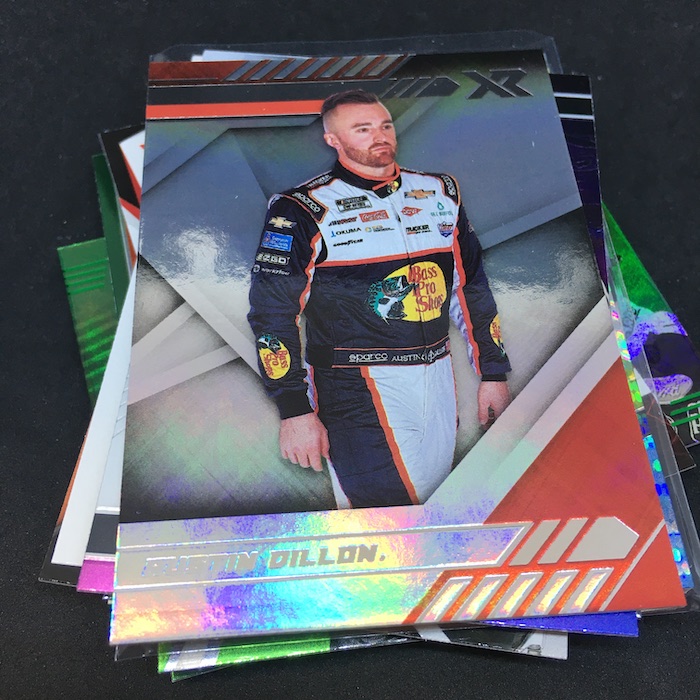 What's Buzz-worthy: Chronicles returns to the track with one more pack vs. last year's blasters and with a hit every time while showcasing the many-sets-in-one approach that makes the band one to rip in any sport. However, a number of the cards here show one of the big challenges for NASCAR ... the photography. Perhaps it's just my box (I suspect it's not) but I think the photo shoots should be adding some variety to the pose routines or work in some props or tire stacks to mix things up. (Perhaps there were still COVID limitations in making this one, I don't know.) The Austin Dillon card at right struck me as especially stiff ("turn to the left!") and it wasn't the only one -- not even the only Dillon card -- that felt like this and that's in part due to the different number of sets (most using studio portrait session photos cut out). If you look back at a ton of sets from NASCAR's past, this isn't a new thing ... but it's definitely something here that stood out. One might imagine how some of the cards here might have more appeal if the portraits had some element of fun added into them ... it might make a brand like this un-beatable. I mean, the photos on the box have a little more expression and a different post on them ... the portrait sessions can't all be robotic business. As far as the cards, the mix was fun and most of them were cleanly cut save for one with a slash across the Optichrome stock and one with some edge gouging likely from packaging. No biggie. I think some variety of images within the brands' designs could make this one a winner every single time out on the track -- especially for the price.