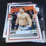 What's Buzz-worthy: This brand has always been about huge variety and the first UFC edition is just that with a number of names found on a number of brands here with Pink parallels the norm here but plenty more in hobby boxes -- including the exclusive National Treasures cards that are often selling for more than a box. The name volume here was pretty solid helping out the fact that there aren't a ton of deluxe-style cards in this one beyond a couple Optichrome and a couple of die-cut cards. I actually had hoped or expected more. But the run of names once I sorted things out this one felt pretty comfortable -- though it was a $27.50 box at Walmart ... not a big fan of their higher SRP plus some approach lately. That's actually tampered my buying with some brands not moving as well of late. This one seems lower-volume compared to other releases lately so that might help this one out. I do think the hobby boxes are a good deal considering all the possibilities but I'm not a big enough of a UFC fan to dabble with the higher-priced stuff. For UFC fans, this is an easy grab as it's not as pricey as Prizm and it still packs some Prizm and Optichrome stock stuff with plenty of big potential -- just not every card. I'll probably rip more of this one if I find it among other options out in the retail wild.