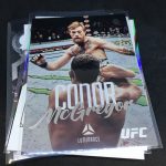 What's Buzz-worthy: This box shows a little bit of the magic that's possible with an all-in-one release ... eight packs, eight Conor McGregor appearances -- and he's not alone with several showings in just 40 total cards. Sometimes that will work out for you, sometimes it might not ... it depends what you're looking for. I got just 15 different names out of 40 cards ... so this one was repetitive and I liked it. Granted, I'm looking at this one from a collector perspective -- from a seller perspective this one is strong out the gate but far later on (like now) the singles prices here should be softer ... because if big names are too easy there will be plenty available out there on the secondary market. Anybody who has opened this brand in other sports in other years will know this ... yet I suspect many still like what they find. I do. ... As I noted in a past break, this brand has always been about huge variety and the first UFC edition is just that with a number of names found on a number of brands here with Pink parallels the norm here but plenty more in hobby boxes -- including the exclusive National Treasures cards that are often selling for more than a box. Blasters of this seem lower-volume compared to other Chronicles releases lately so that might help this one over the long haul but it's also still available in my area. I do think the hobby boxes are a good deal considering all the possibilities but I'm not a big enough of a UFC fan to dabble with the higher-priced stuff. For UFC fans, this is an easy grab as it's not as pricey as Prizm and it still packs some Prizm and Optichrome stock stuff with plenty of big potential -- just not every card. I'll probably still rip more of this one as it's comfortable for its increased price out there in the retail wild vs. others.