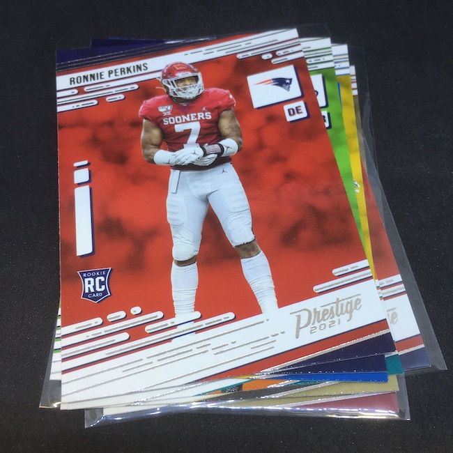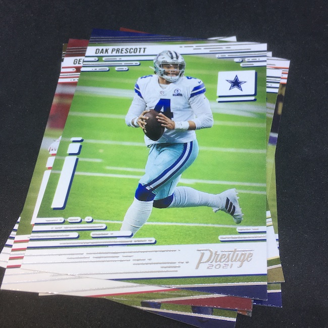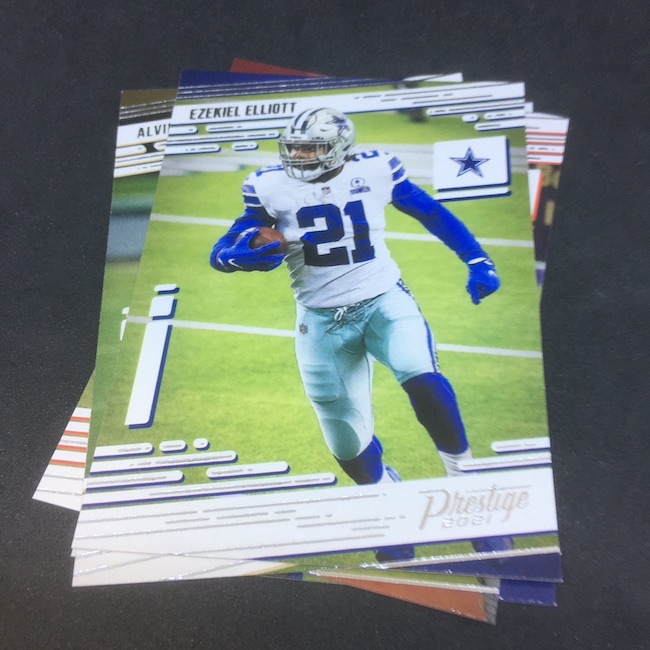 The box: 2021 Panini Prestige NFL cards (blaster box)