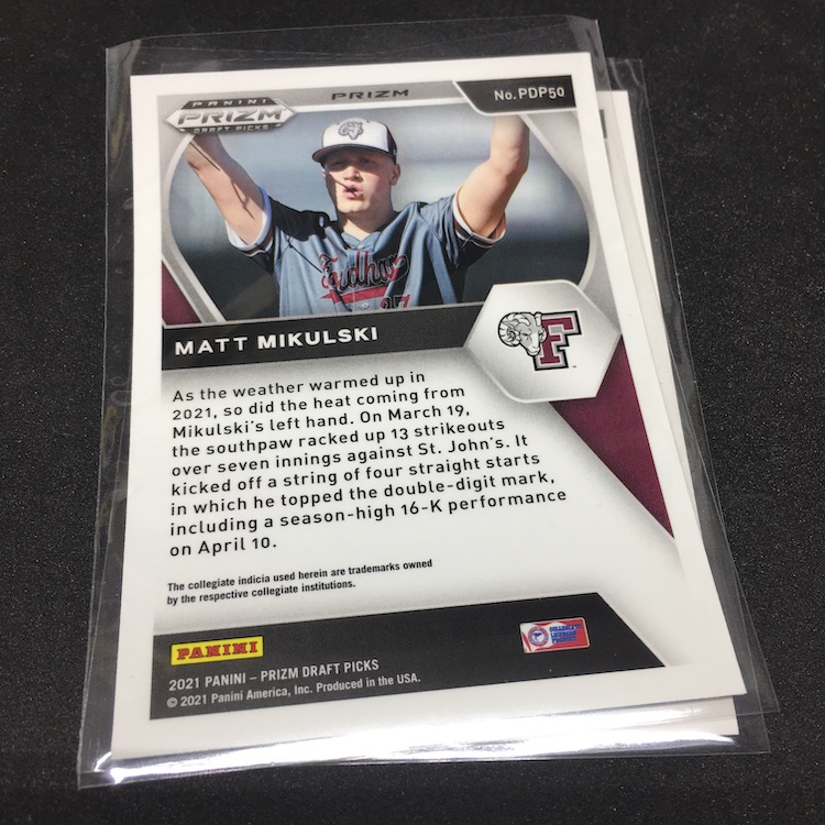 The pack: 2021 Panini Prizm Draft Picks White Sparkle baseball cards