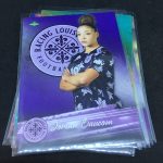 What's Buzz-worthy: If you're an observant retail hunter, then you might have spotted these at at least one chain store -- and they can deliver pretty well despite their small size. This is the first National Women's Soccer League trading card set from smaller publisher Parkside Cards but they have a big bold feel to them that can easily out-do any designs from other companies. The base set here is 200 cards with a small number of un-marked photo variations limited to only 100 copies in the mix along with some parallels and inserts as seen in this sampler I picked up at a Walmart. Since this release has no competition there is a lot of demand in some instances for cards from this one -- check out this search and flip to completeds. Autographs are one in 20 packs and include Megan Rapinoe for starters, while other inserts can be far rarer (See odds in gallery.) My pack was on-par odds-wise with the Hyped card being the rarer pull (one in four) but with an odd crooked cut on the bottom of the card. (It happens ... and everything else here was sharp and clean.) I'll admit that I don't know any of the names in this pack but one -- but that's on me -- and there are some notables here sales-wise that can easily pay for your pack ($11.98) if buying at suggested retail price. Trinity Rodman, Ali Krieger, Alex Morgan, Julie Ertz, Kealia Watt and a number of others are selling well here -- with ink and the SPs pricey cards. You can find the checklist here. I don't do much soccer but this one made me want to open more to see how things looked. The fronts are simple and clean with strong photos while the backs are simple and clean with each card also noting their Instagram handles. The lesson here? Don't assume something that might not interest you on cardboard doesn't have much value. If you hit those links you'll see plenty of cards with a lot of interest ... without a premium price if you can find it out in the wild. I'll likely open more if I do.