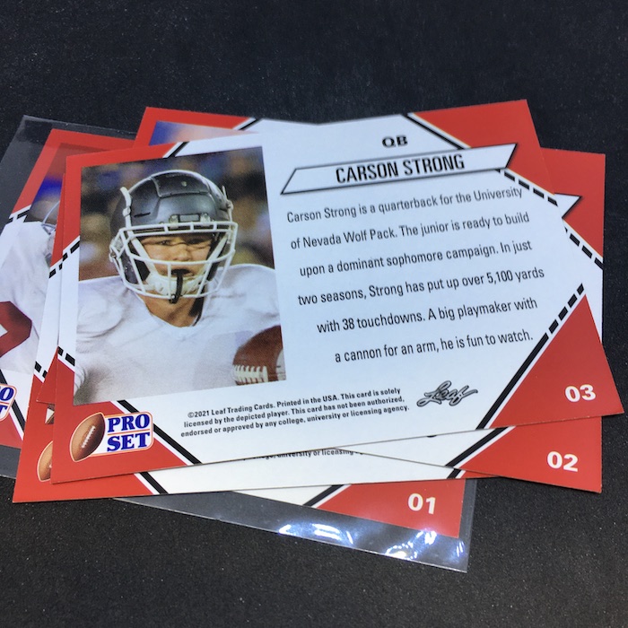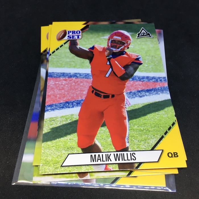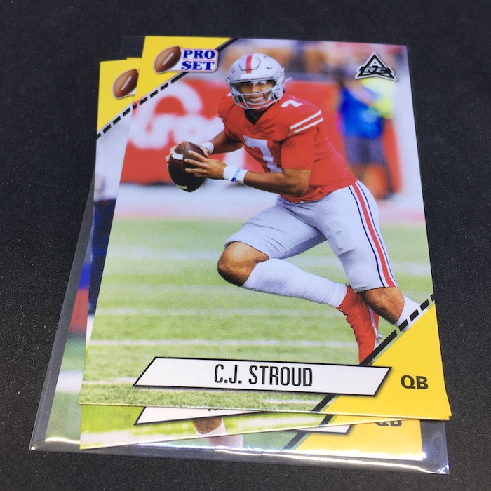 What's Buzz-worthy: This retail-only release is a simple one that still has a ton to chase. It's a 10-card set in a snap box along with two autographs every time. The set is a mere 10 cards with the white version being a base and then Red and Gold parallels. (No odds on the box but I landed a parallel set this time.) These are all active college players on "Amateur Rookie Cards" (Leaf's logo on them, too) and that gives this one a longer shelf-life as well as there could be big games to come in college to spark collector interest before pro time. The chase here? The autograph lineup is huge with more than 100 different signers and those all also have Gold parallels. This one had just standard cards for the autos with a couple of relatively solid names for the Minnesota Golden Gophers and Oregon Ducks. My Bryce Young card here -- probably the highlight card for me -- had surface and edge issues (minor stuff) while several others also had varying issues. (One even had three big surface dents from manufacturing equipment holding cards.) It was enough to damper my reaction to this one for sure. The design is pretty basic -- but it's pretty good in a Pro Set state of mind and that's not a bad thing -- though some of the images so have some awkward crops (Young, Willis, Ewers ... QBs with throwing hands cut off) -- but the two signed cards here looked really sharp over than some back-edge stock issues. Three big autos here are redemptions -- Bryce Young, C.J. Stroud and Chris Olave -- but the rest are in there ... though it's a deep crop. I kind of wish the base cards were more of a traditional pack but I suspect this approach might mean cards arrive another way -- or did and I missed it. (I really only college one college team, myself, so I am not watching the various NIL releases as closely ... or they haven't presented themselves at retail like this one.) All in all, I think this one has some good potential, though the odds do make it a steeper climb to find any one particular name. These are slightly premium priced box ($35) is smaller than others out there but there aren't as many active college releases just yet (some are coming or have recently arrived) but at retail there are a number of comparably priced boxes with no guaranteed hits, too. Is this the safest bet? Probably not ... but it's not a bad one, either.