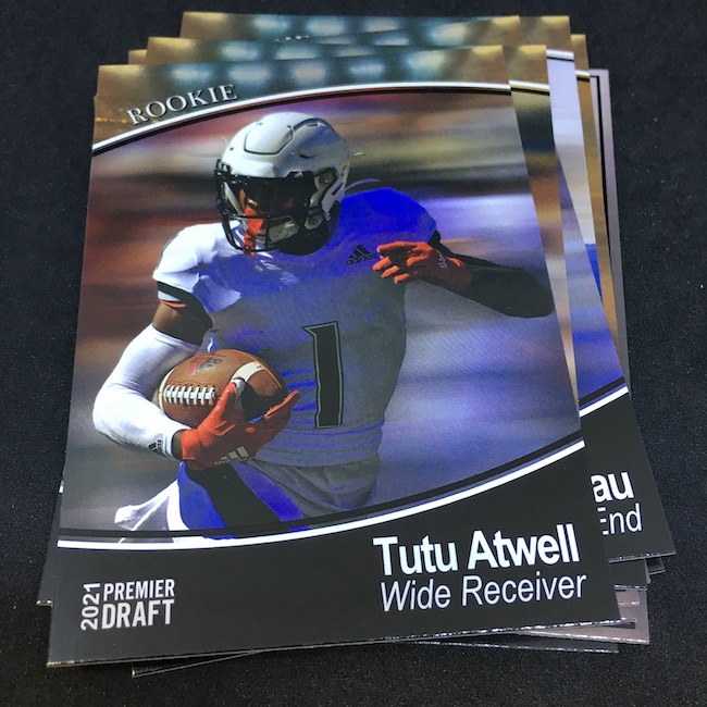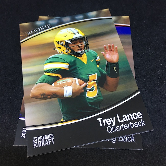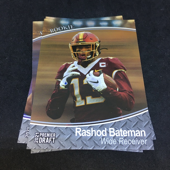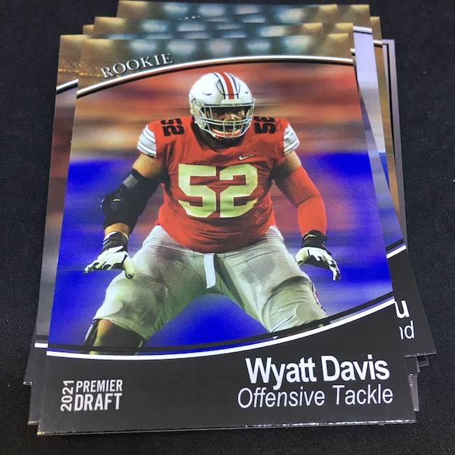 Notables on base cards – Najee Harris, Trey Lance, Kyle Pitts, Jaycee Horn, Kyle Trask, Rashod Bateman, Micah Parsons ... and others in gallery.