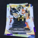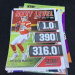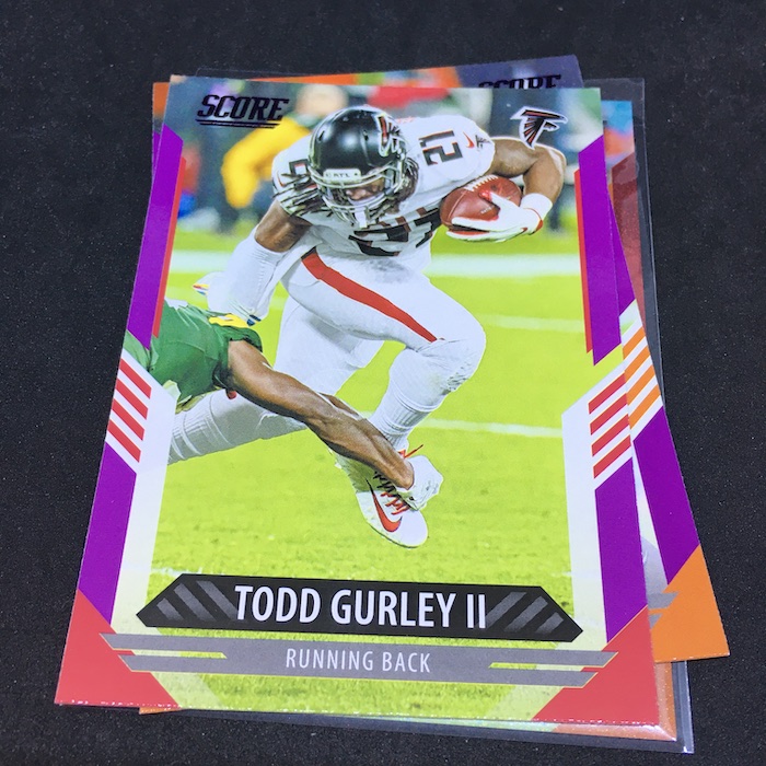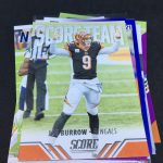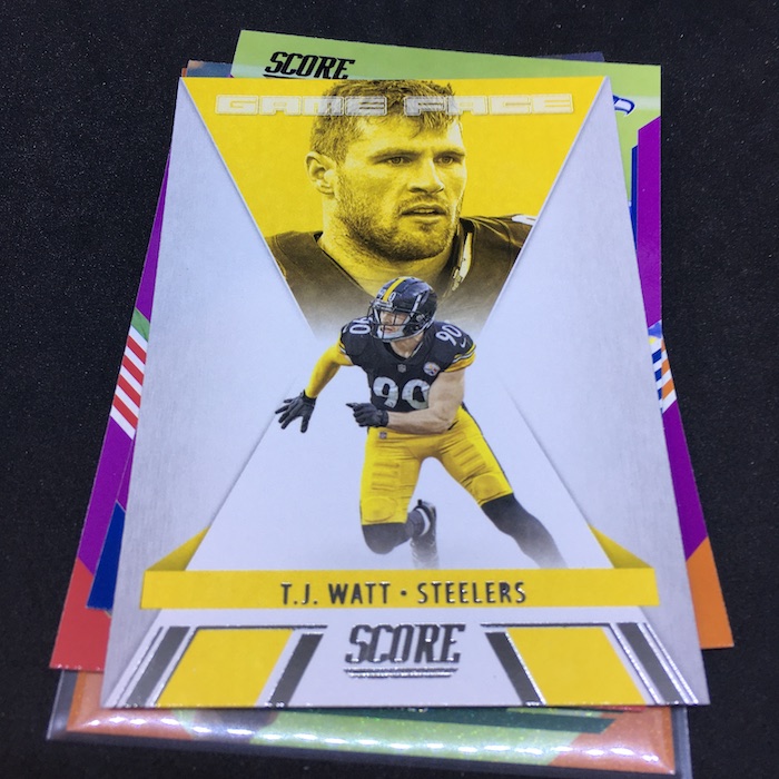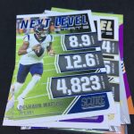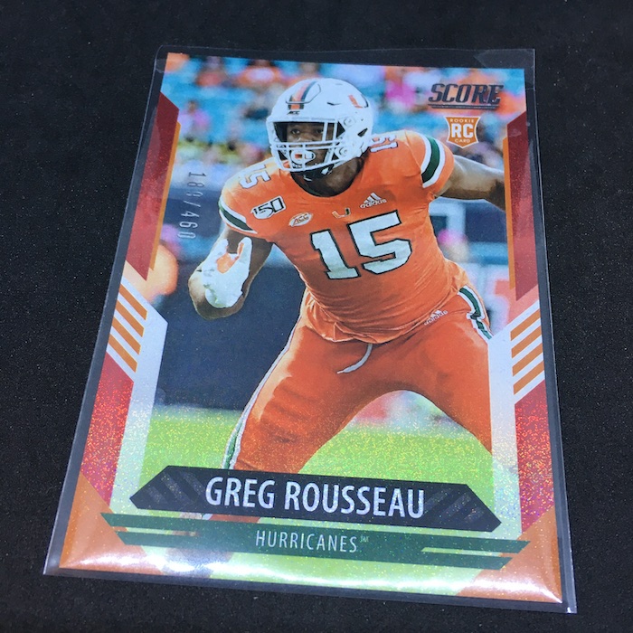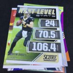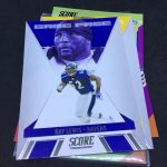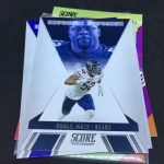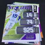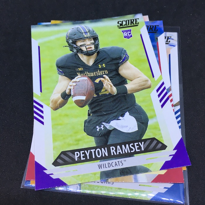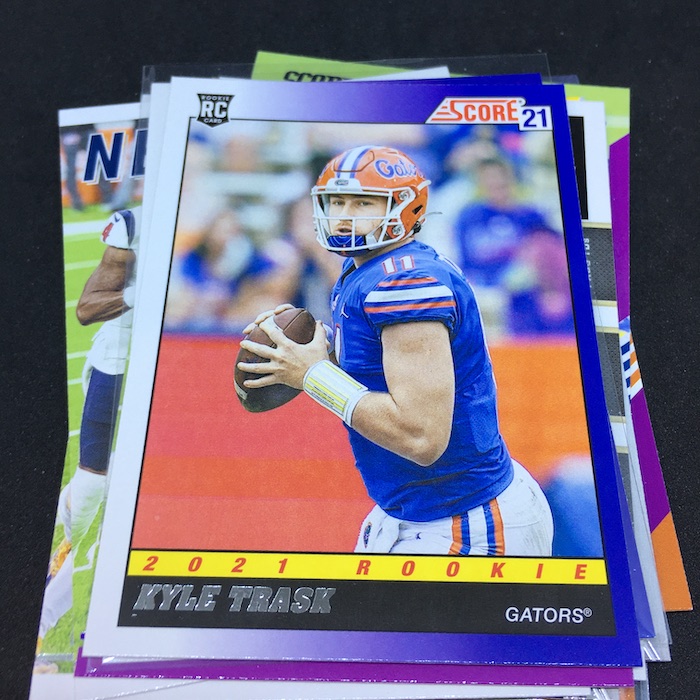 What's Buzz-worthy: I still haven't gotten my hands on a blaster box of this one ... but baby steps I'm up to a hanger box from a single jumbo pack out there in the retail wild. (NFL is hot in my area right now ... gone before me to the campers/flippers.) The lineup here is pretty much the same as the jumbo packs but with a numbered parallel exclusive to just these boxes (a big deal if you pull a key rookie which could make these long-term sleepers) and then Purple parallels for both base and inserts here, too. I like the larger volume of everything here vs. the jumbo packs and there's perhaps a little more protection and mystery in this packaging, too. This pack was leaner on big stars in the base set than I had hoped for, but I landed at least one notable RC to help that and then some decent names among the inserts for sure. It's not super-flashy but there's enough to barely get this one an A in my book. I think this one is an upgrade vs. some recent years of Score design-wise, so I'll still rip more if/when it presents itself -- I actually prefer college unis for RCs in some instances and these work for me.