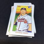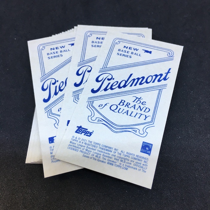 What's Buzz-worthy: Wave five of this one sold 11,144 packs and my gut says other than maybe one card here these two are pretty average. What drew me in? Appearances by Christy Mathewson, Shohei Ohtani, Honus Wagner and maybe Bryce Harper -- I'm a sucker for tobacco-sized mini card sets -- but I found none of those players. There is ink possible in these packs -- hit the checklist link above for those details -- and then there are 1/1 stamped T206 buybacks and then some chase backs possible. My Sweet Caporal? One in three and not exactly a barn-burner of a name. In this wave Drum cards are announced as /10 while others numbered and not-numbered cards are possible. I did these given how lean retail finds might be out there these days -- I'm just not big on hitless $30 blasters so I have skipped some -- but there is something to be said for a simpler approach here. This year's set is 10 series so there's a chance something will catch my attention once again but this one -- my first rip since Wave 1 -- wasn't that great of an experience. Each pack will get you at least two Piedmont parallels while other back types will replace one of them in a pack. This batch of 50 players only had three rookies -- none all that big -- and included a number of players from the original release ... so if you collect the real thing or those players you might have more to find here.