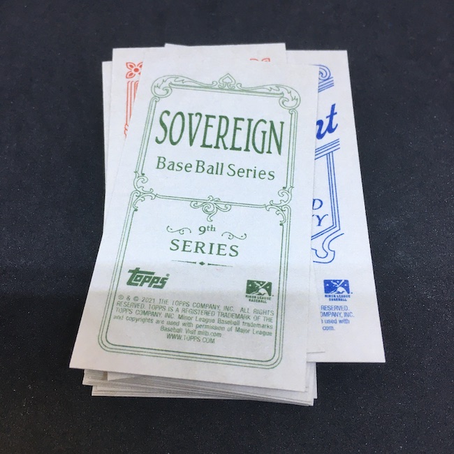 What's Buzz-worthy: Wave nine of this one sold 11,668 packs and I dug in here because this wave is perhaps the most-unique version of the 10 this year -- the one that is solely made up of MiLB cards like some of the T206 cards of the past, which also showed players in minor-league cities like Birmingham, Mobile and Savannah. This time? It's present-day teams and a number of top prospects are in this one. I landed a pair of the two-per Piedmont backs (one in each pack) and then a Sweet Caporal (one in three) and a Sovereign (one in six). The rest were the basics here, though some A-list MLB stars can be found on variations in this series and then there are, of course, autographs for four players. (See checklist above.) Nothing on those fronts for me. I think I landed a couple of notables here but names that eluded me included J.J. Bleday, Blaze Jordan, Brennen Davis, Julio Rodriguez, Adley Rutschman, Bobby Witt Jr. and the biggest, Wander Franco. Was I blown away with my two packs? Probably not. Would I do more? Perhaps. If T206 returns in 2022 for a third run -- I'd prefer they try T205s but they are perhaps more complicated to build -- I think they should trick some things up here to make every pack feel a little more interesting beyond just the simple tricks from all those years ago. Give us that, of course, but give us something more in every pack, too.