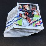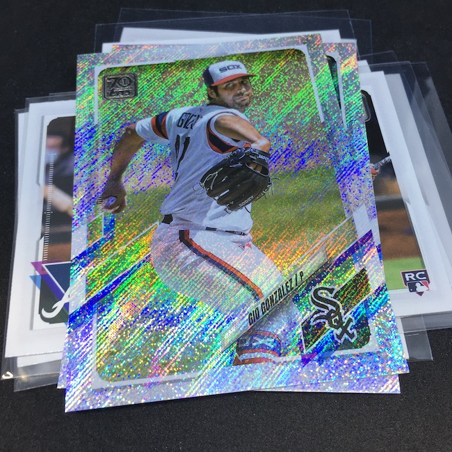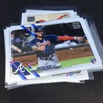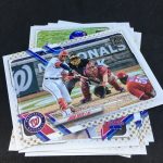 What's Buzz-worthy: Yep, I tried it again -- the Walmart factory set chase -- and I defied those one-in-three odds to land a Gold set. It's not as flashy or colorful as last year, but I'll take it (and probably not do it again as I liked last year's RC crop better). This is the second year in a row where the Topps MLB flagship has a chase element in its factory sets sold at Walmart and this version is the easiest and is un-numbered. Other versions are serial-numbered at /299 (Blue Star), /99 (Orange Star) and even a 1/1 Foilfractor set. These also have an extra chase with a five-card Foilboard parallel pack -- mine was a dud of sorts -- with dramatically higher numbering this year (/264 last year but that was a larger 700-card set) and then the rookie variations. If you don't normally grab a factory set every year (and that's less likely in recent years given all the bonus inclusions for rookies) this adds a little more to the possibilities. There are a ton of RCs here (see gallery) and I think if you land one of these chase sets you might have a good one to hold for the long-term or slab keys as they arrive. (Check out Jo Adell and Joey Bart MiLB stats this year ... good things seem very possible.) Right now? There are a lot of base RCs out there to choose from for all guys here but these, even if a little more plentiful vs. last year, will inevitably be rarer than the regular stuff as they are a slice of a slice of a slice -- chase cards only in Walmart-only versions of factory sets. The volume on the numbered sets also makes me think the Golds might not be as plentiful as people might think.