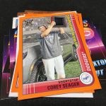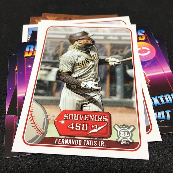 Notables on base cards – Fernando Tatis Jr., Max Fried, Byron Buxton, Ronald Acuña Jr., Mookie Betts, Randy Arozarena, Shane Bieber, Corey Seager, Nolan Arenado, Kris Bryant, Rafael Devers, Anthony Rizzo, Juan Soto, Mike Trout