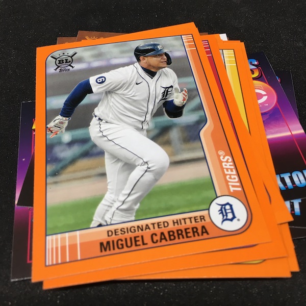Orange parallel (10) – Ronald Acuña Jr., Corey Seager, Marcell Ozuna, Adam Wainwright, Chris Paddack, Jeff McNeil, Dustin May, Miguel Cabrera, Justus Sheffield, Didi Gregorius