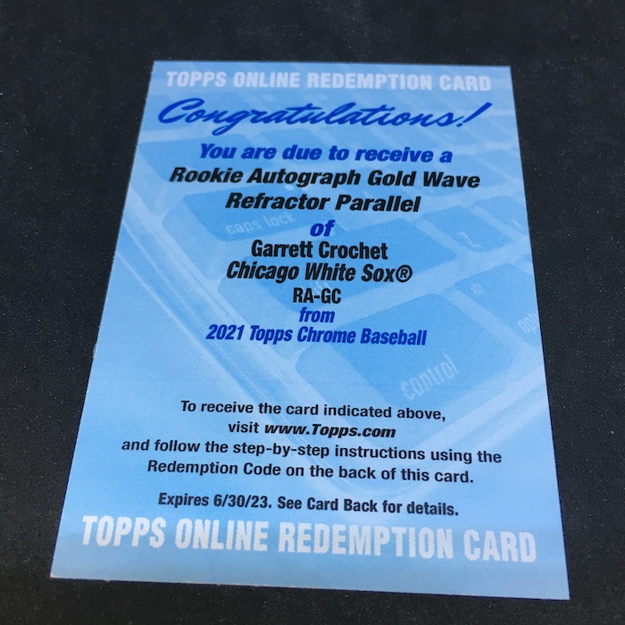 Gold Wave Rookie Refractor Autographs (1) – Garrett Crochet (/50) (redemption)