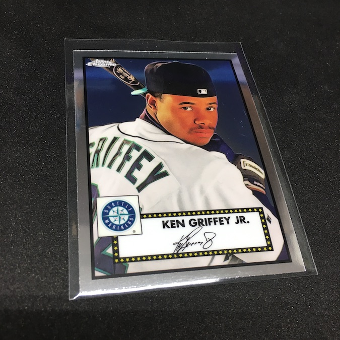 What's Buzz-worthy: This recent arrival (and long-delayed) release is a landmark one in that it's a massive 700-card Chrome checklist -- likely the biggest Chrome set ever made -- and it's one that meshes plenty of Heritage vibes as it includes stars from the past and present on a modern re-do of the iconic 1952 Topps set but on a modern finish. The main chase elements here are parallels -- a meaty lineup was initially announced but with its delays there are fewer in hobby packs, though it looks like retail/mega formats may have exclusives -- and then autographs. The ink in this one was a head-scratcher to me as to why he'd be in here (that dropped the grade in my mind off of an A) but I landed the best card (Griffey's base card ... yes, I said it) in my final pack to end this one on a high note. The Red parallel here is perhaps one in 81 packs (the parallel odds might be a little messy on the wrapper as it's just listed as "Red") while the Mini-Diamond parallel is one in 116. Those two cards help the box grade pull higher but the real power in this one was the volume of Hall of Famers I got -- it seems abnormally high -- while my current stars were very lean (mostly commons, actually) and the rookies were, well, 2021 ... not a crop that has aged that well. Looking at the percentage of a base set found here, collecting all 700 will be a challenge with so few cards per pack -- your best bet is to bust a case and hope the collation is good and then fill in gaps. The parallels here are nice and should draw people in -- and if you want any one player on a parallel be sure to multiply those odds by 700 to figure your chance on your guy's one particular card. (A Red Griffey, for example, would be one in 56,700 packs? Buy your guys when you spot them ... some might not surface for a while if you miss out on the rarer ones. This should also help value.) The lone chase card beyond ink and parallels is a re-do on the 1952 Mickey Mantle -- that one is one in 11,416 packs. So ... they made a lot of this one -- but that's a good thing if you're a collector wanting to rip something with long-ball potential.