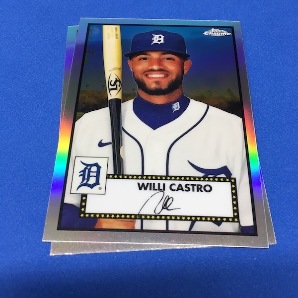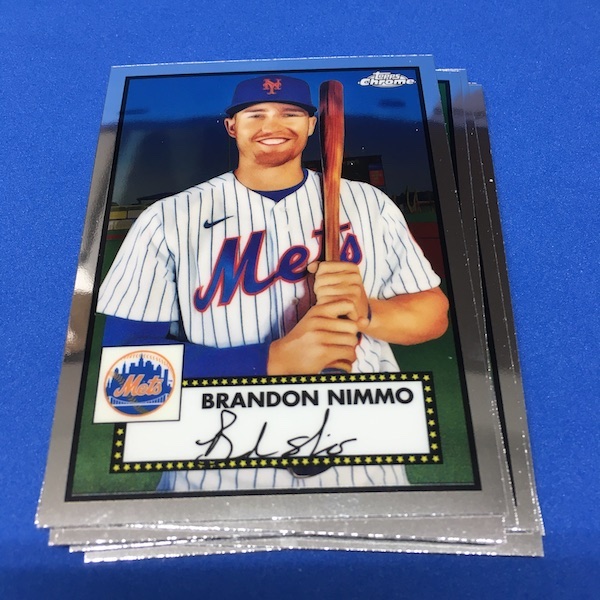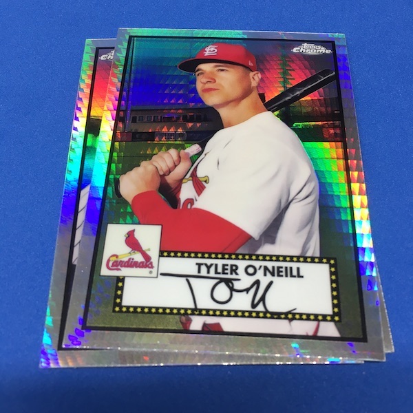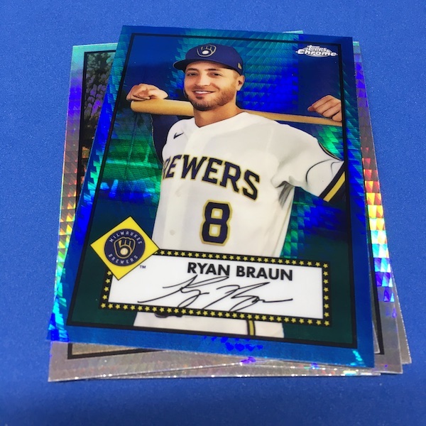 What's Buzz-worthy: I'll admit this box didn't start off well even after the rarest card here arrived from a pack -- that Bauer card is one in 230 packs but is a dud -- but the star power picked up quite well after that one but with the centering issues that are all over the place with this one, making my box that was at a deep sale price a bit rough until the autograph arrived. So, again, the ink makes the box here as they are one in eight boxes and that's a modern Hall of Famer 'graph I can dig. This was my third of five of these at a steep discount and it once again over-delivered well. At original price? It was still good but I'm not a fan of these at all at original price -- buy hobby or even the other format as there are guaranteed inclusions that might make them safer in the most-average circumstances. (Are my average boxes to come in my last two boxes? We'll see ... I opened them all but don't actually remember what was in them. It'll be a surprise to me, too, when I break those down here soon.) ... As I noted before, this release is a landmark one in that it's a massive 700-card Chrome checklist -- likely the biggest Chrome set ever made -- and it's one that meshes plenty of Heritage vibes as it includes stars from the past and present on a modern re-do of the iconic 1952 Topps set but on a modern finish. The main chase elements here are parallels -- a meaty lineup was initially announced but with its delays there are fewer in hobby packs, though other formats exclusives -- and then autographs. The Prism parallels are only found here and there are also Prism Golds to be had among several parallels found here. (I landed a few in my run.) ... The parallels here are nice and should draw people in -- and if you want any one player on a parallel be sure to multiply those odds by 700 to figure your chance on your guy's one particular card. ... The lone chase card beyond ink and parallels is a re-do on the 1952 Mickey Mantle -- that one is one in 11,416 packs in hobby but easier here at one in 8,046. So ... they made a lot of this one -- but that's a good thing if you're a collector wanting to rip something with long-ball potential.