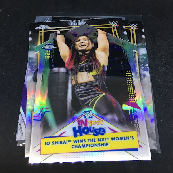 What's Buzz-worthy: I thought I was opening a WWE box but after finding that Banks auto -- one in 1,105 packs (or one in 46 boxes or one in six cases) -- I think my reaction was a little more EC(fn)W with a rather-holy phrase coming to mind. Not only is that a tough pull but Banks is an A-list name here and a favorite I have collected in the past. Atop that? The Green Undertaker insert is one in 206 packs and even that basic Green parallel isn't an every-box thing at one in 52. From the start this was an A+ box and it's fitting because once I had this one in hand some of my worries about this release based on mocks dissipated ... it's an A+ release, too. Last year, I gave the somewhat minimalist design of Chrome an A+ but I think this one is better with the pseudo-1987 Topps vibe borders (no wood) working well within Chrome but without a comic book feel that I initially had. This one feels modern like a Chrome set should. The only drawback here is you can see how it was delayed a bit this year with a number of past WWE stars still on the checklist, giving us last shots at new cards and new ink -- and I found a second favorite, Royce, on the other auto with a pretty fierce shot and a solid on-card sig to go with it. The Refractor-per-pack formula remains here but with those sometimes coming in tandem with the variation cards (also on a Refractor finish) along with some simple inserts that aren't jarring save for maybe that In Your House set, which has intentional throwback vibes appropriate to the PPV's history. I went hobby boxes here for my first taste as the autograph odds in retail looked very rough but maybe they will over-deliver like they did last year. Is this one dramatically better? Nah, in fact the ink lineup had some people talking about how it wasn't as strong this year, and fans of retired big names may not find them in the base checklist but it ain't bad, either. Both of my boxes were strong here and the first impression was, too.