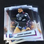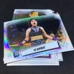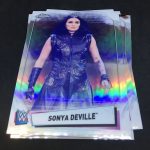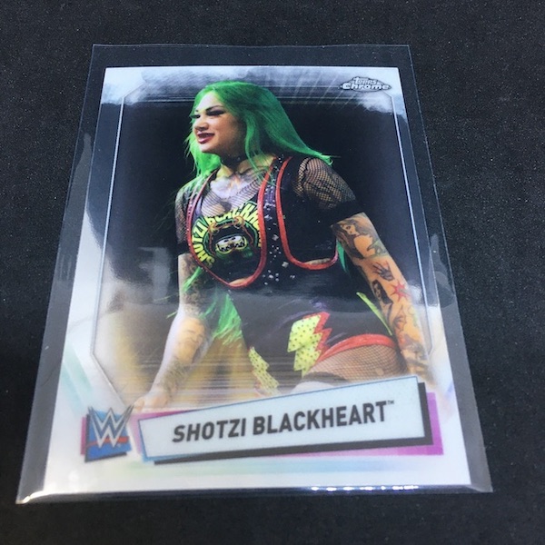 Notables on base cards – Shotzi Blackheart, Sasha Banks, Liv Morgan, Mandy Rose, Peyton Royce, Billie Kay, Bianca Belair, Io Shirai, Asuka, Ruby Riott, Natalya, Roman Reigns, "The Fiend" Bray Wyatt, Big E, Kofi Kingston, Johnny Gargano, Drew McIntyre, Seth Rollins, Santos Escobar, Jeff Hardy, Seth Rollins, Bobby Lashley