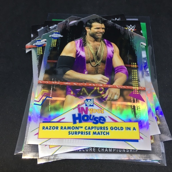 What's Buzz-worthy: My first box of this one was a monster more toward my tastes and my second here is also a strong -- A+ -- box in a different direction with a rare auto of a top men's star and a rare parallel insert of a Hall of Famer. The Orange card? One in 814 packs. The Gold auto? Oddly only one in 105 -- but both are strong finds to help out a box that oddly had a lot of duplication from my first on the Refractors and inserts front but also had a boatload of off-centered cards that would have this box being a no contest if you were ripping Chrome to slab some Chrome. ... As I noted last time, last year, I gave the somewhat minimalist design of Chrome an A+ but I think this one is better with the pseudo-1987 Topps vibe borders (no wood) working well within Chrome but without a comic book feel that I initially feared. This one feels modern like a Chrome set should. The only drawback here is you can see how it was delayed a bit this year with a number of past WWE stars still on the checklist, giving us last shots at new cards and new ink. For more thoughts and images, check out my previous break. I'll have at least one more as I like this one's feel ... and it is likely a finale for the brand given yesterday's licensing news.