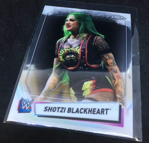 Notables on base cards – Shotzi Blackheart, Sasha Banks, Rhea Ripley, Asuka, Kayla Braxton, Becky Lynch, Tegan Nox, Alexa Bliss, Scarlett, Edge, Big E, Finn Balor, Aleister Black, Shinsuke Nakamura, Randy Orton, Bobby Lashley, Braun Strowman, Karrion Kross