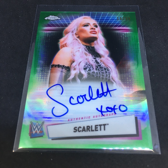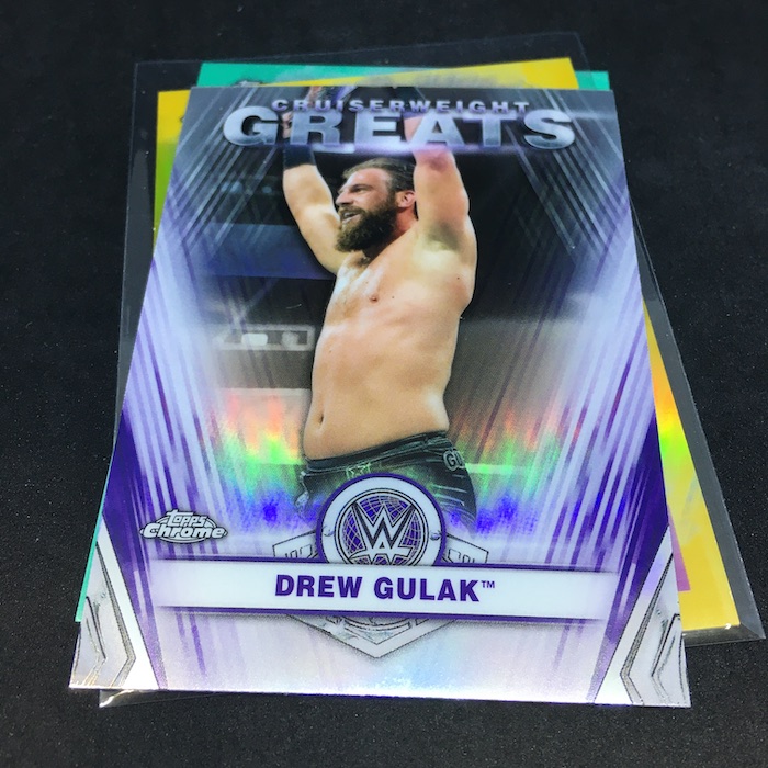 What's Buzz-worthy: My third box of this one delivered at a top-tier kind of results but not the same as previous ones. This time, the Green auto is one in 53, the Green variation is one in 172, the Gold card one in 102 and the Aqua card one in 34. Typically boxes do include a color auto but statistically none of these should have been found here, let alone all in the same box so it's pretty solid. It's an A+ box but it can be topped. My others had big single finds ... this one had the depth. ... As I noted previously I gave the somewhat minimalist design of Chrome an A+last year but I think this one is better with the pseudo-1987 Topps vibe borders (no wood) working well within Chrome but without a comic book feel that I initially feared. This one feels modern like a Chrome set should. The only drawback here is you can see how it was delayed a bit this year with a number of past WWE stars still on the checklist, giving us last shots at new cards and new ink. For more thoughts and images, check out my previous break. I'll have at least one more as I like this one's feel ... and it is likely a finale for the brand given the recent licensing news and the schedule of remaining releases vs. time on the calendar before the Panini switch. The Chrome and Finest sets the last two years have been highlights and they set a standard of the basics and color for chromed-stock releases to come.