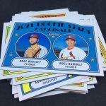 What's Buzz-worthy: My final bust of this one is essentially like the recent one but with perhaps a little more 2021 star power with that Vladimir Guerrero Jr. card and some others here and there. Ultimately, though, this isn't the flashiest box -- at all -- just like last time but it's still packed with good volume for RCs and stars with the same volume but a different mix of inserts this time. Buying Heritage blasters at suggested retail price (if found) could be strong long-term holds here as this year's boxes are loaded with rookies and stars, have hit potential (long odds) and it's a popular brand that's heavily collected. Need some encouragement on this? Just do a general search for past Heritage boxes from the last decade or so ... they aren't out there as often as one might expect as they get ripped. (Unopened box values have been rising on 2000s stuff and basic annual staples like this one can do well.) Blasters of this one have not been great for me this year but I have cleaned up with hobby and mega boxes from this release.