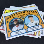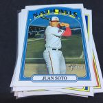 Notables on base cards – Fernando Tatis Jr., Bo Bichette, Mike Trout, Max Scherzer, Juan Soto, Mookie Betts, Cody Bellinger, Pete Alonso, Albert Pujols, Luis Robert, Austin Riley, Clayton Kershaw, Vladimir Guerrero Jr., Gleyber Torres, Devin Williams, Yu Darvish, Max Fried & plenty more.