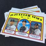 What's Buzz-worthy: Such a monster box ... a rare parallel of Mike Trout, an autograph of a notable Yankees rookie, a poster box-topper and a mess of Rookie Cards and notables. The key is the Trout -- it can pay for a box easily and the eBay highs are, well, crazy with one going for a huge amount earlier this month -- but an auto box is always a good thing with this brand. I've not had a bad hobby box of this one this year -- I'm three-for-three for autos in hobby boxes with boxes from three different sources -- and I've pulled ink elsewhere, too, to only one Relic among all of my rips. The hobby boxes have over-delivered for me with other inserts, too, and, weirdly, I've pulled Trout as my one-per-box variation card more than once. This year's released has a super-saturated volume of RCs and stars (all with In Action cards) adding a lot of power to the mix. It's also lean on the star power in the SPs (a good thing to me, perhaps not to sellers) and then full of quirks and chase if you buy larger box sizes. The frames are colorful and quirky -- a little overwhelming on the shared RCs -- but this one is cleaner and crisper than the original 1972 set and the high volume of rookies and stars makes the first series here very strong unlike the last couple years. All in all, this was another great box for a strong annual brand and I'm not done ripping this one.
